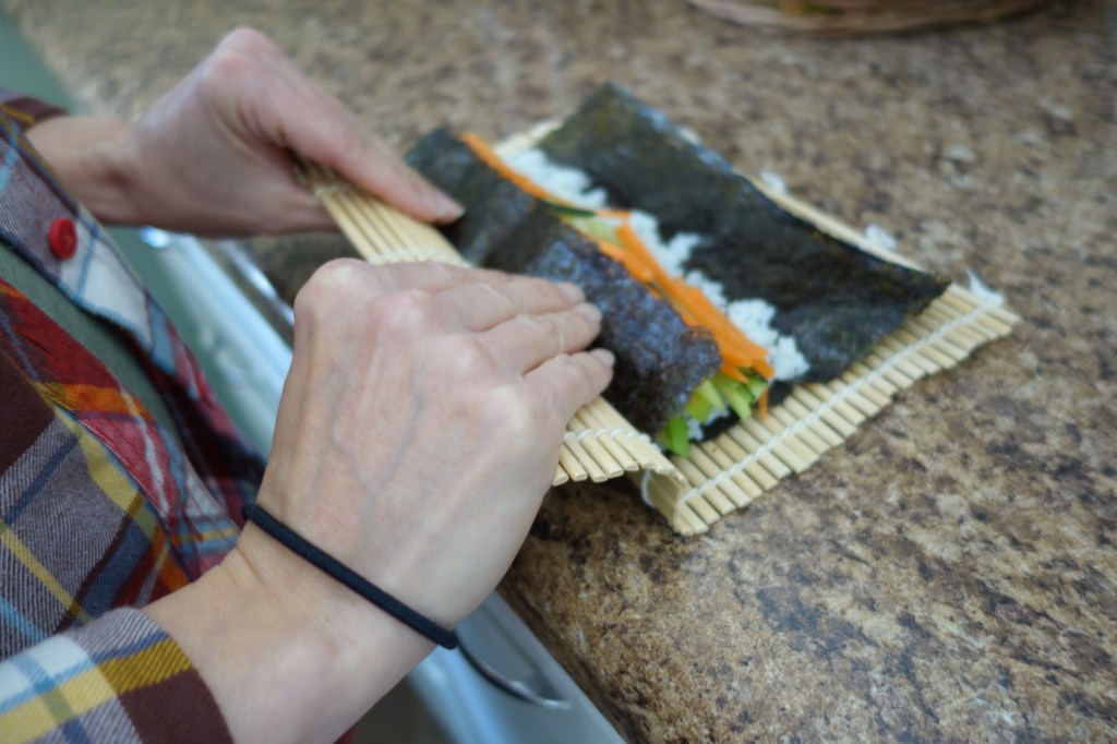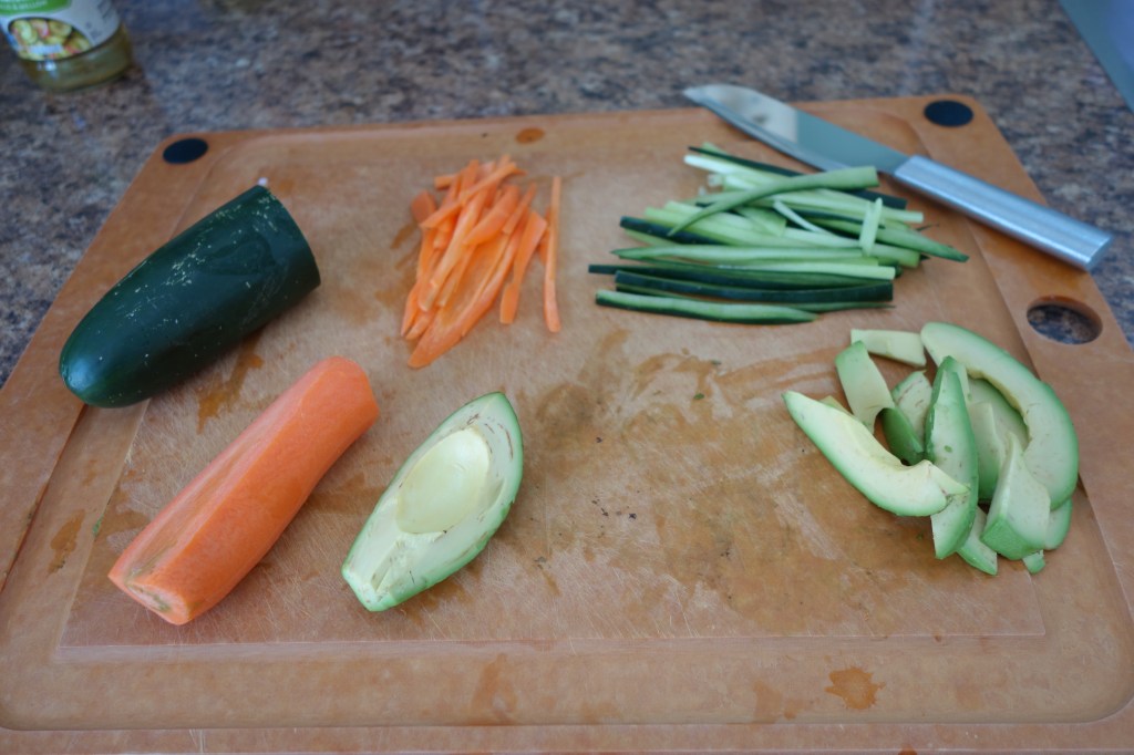 - While rice is cooking chop vegetables. The smaller you make them, the tighter your rolls can be.